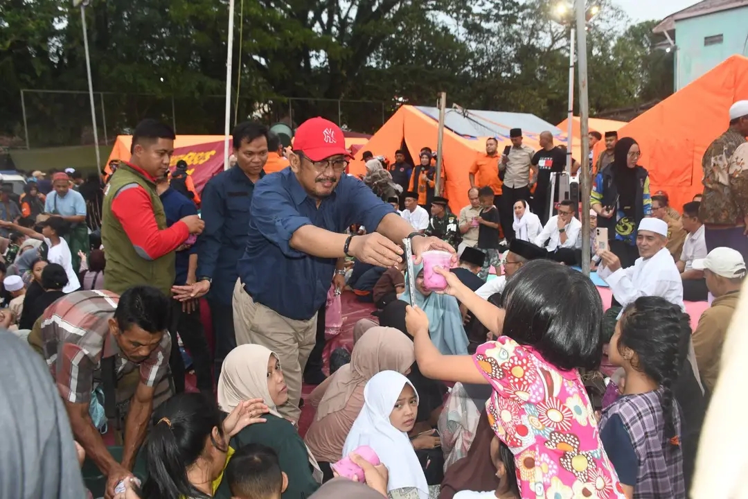 Dalam kesempatan tersebut, Bupati H Asep Japar menyapa para penyintas satu per satu. Ia terlihat berbincang dengan warga, menggendong anak-anak, hingga membagikan takjil kepada mereka. Kehadiran orang nomor satu di Kabupaten Sukabumi itu pun memberikan penguatan moral bagi para warga yang masih tinggal di pengungsian.