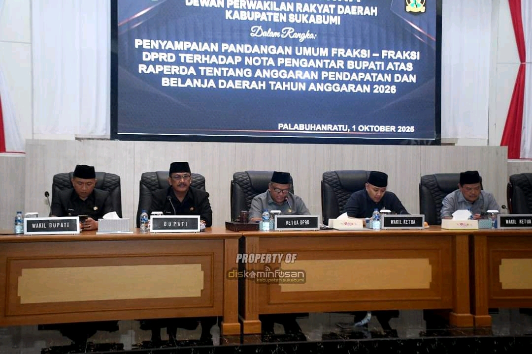 Rapat Paripurna digelar di Ruang Sidang DPRD Kabupaten Sukabumi, Rabu (1/10/2025), dan dipimpin langsung oleh Ketua DPRD Kabupaten Sukabumi, Budi Azhar Mutawali.