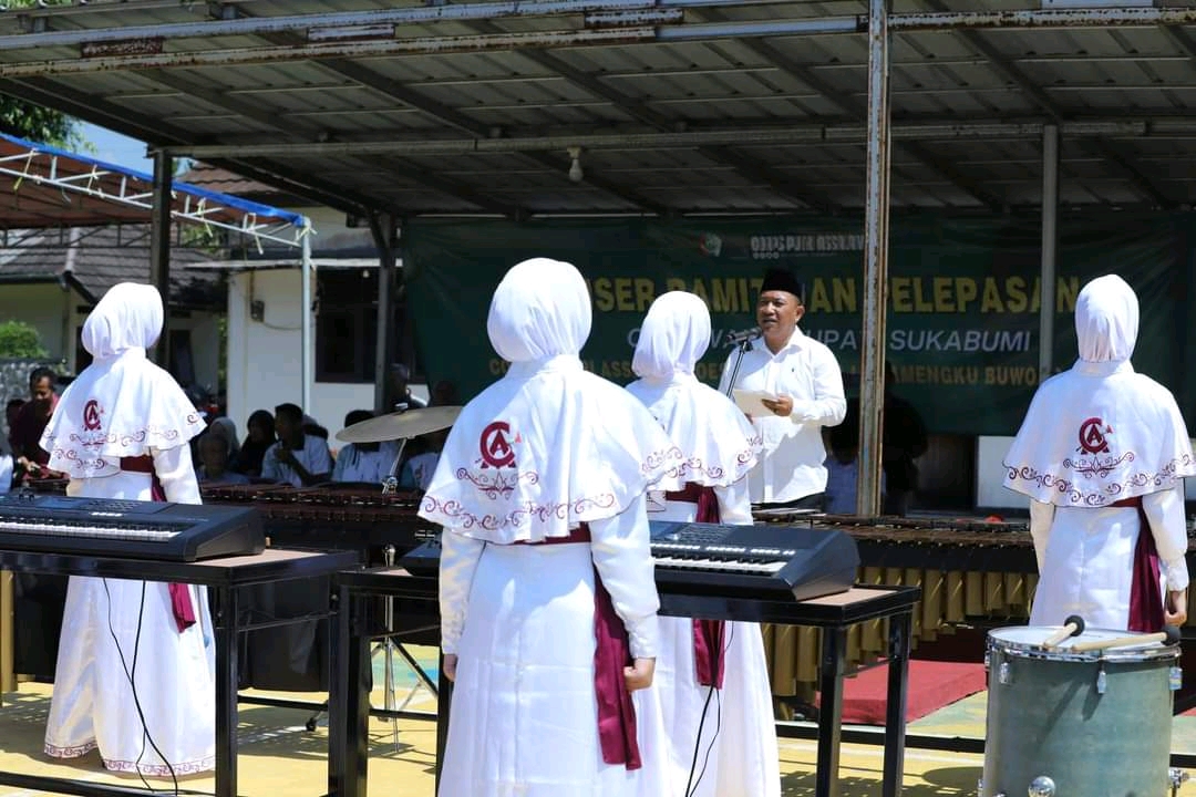 Parametermedia.com-Wakil Bupati Sukabumi H.Andreas melepas Corps Putri Assalam Goes to Kejuaraan Marching Band Tingkat Internasional Piala Raja Hamengku Buwono Tahun 2025. Pelepasan berlangsung di Lapang Basket Pondok Pesantren Assalam Putri, Warungkiara, Sabtu 4 Oktober 2025.