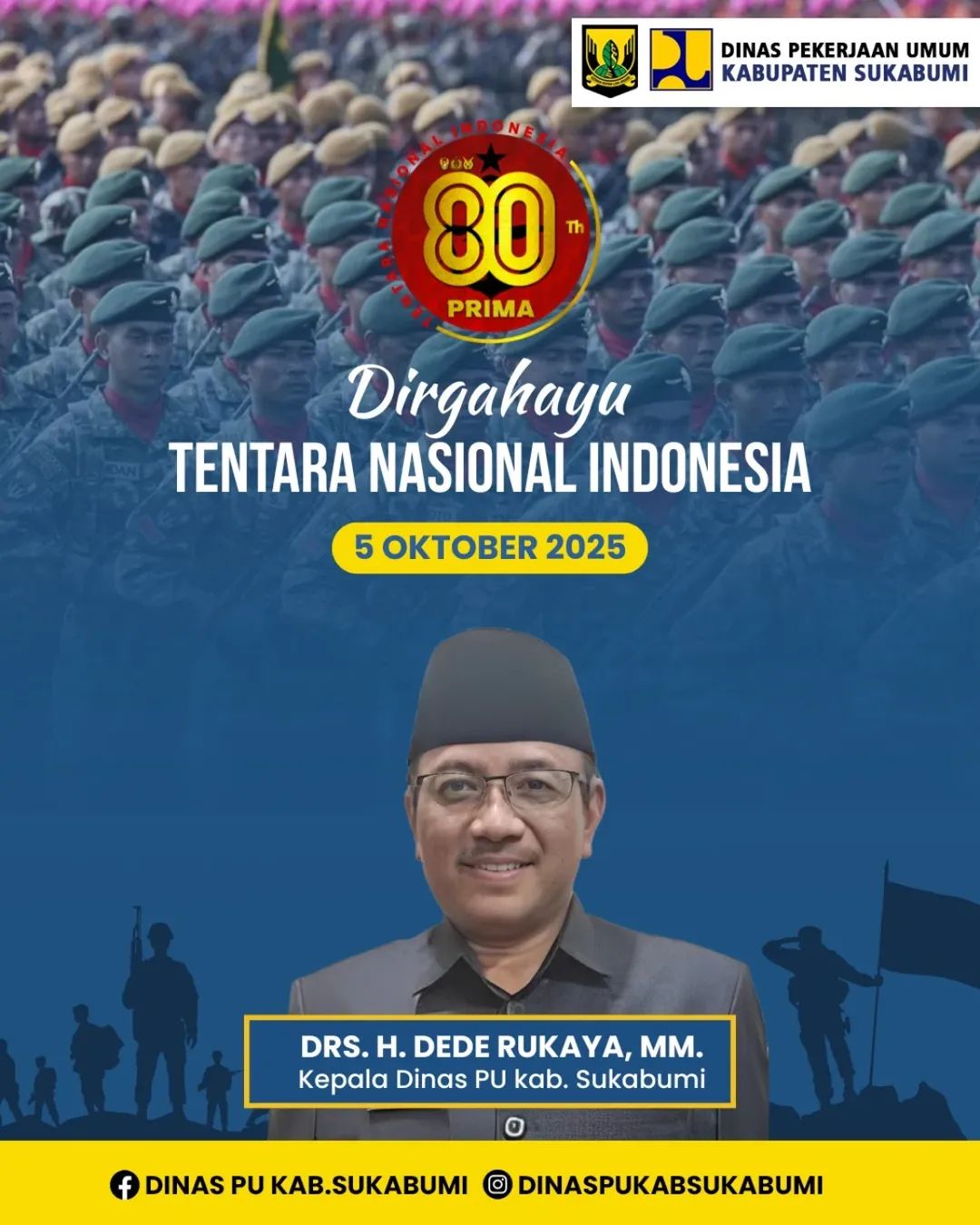 Dinas Pekerjaan Umum Kabupaten Sukabumi Mengucapkan Selamat HUT Ke 80 Tentara Nasional Indonesia 5 Oktober 2025