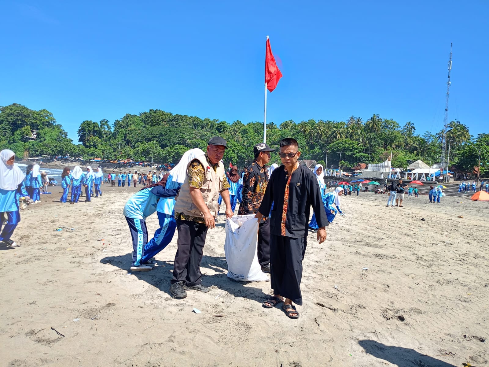 Parametermedia.com -Dalam upaya menciptakan kebersihan dan edukasi kepada masyarakat, tim gabungan jajaran Forkopimcam Cisolok dibantu ratusan pelajar dan masyarakat lakukan bersih-bersih sampah pasca libur lebaran 1445 Hijriah, di Pantai Karanghawu, Kecamatan Cisolok, Kamis, 18 April 2024.